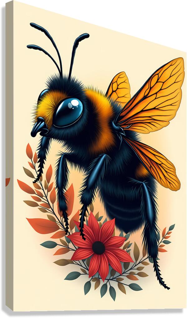 VIBRANT BUMBLEBEE AND FLORAL ART POSTER – NATURE-INSPIRED WALL DECOR EL HALAOUI ALI  Canvas Print