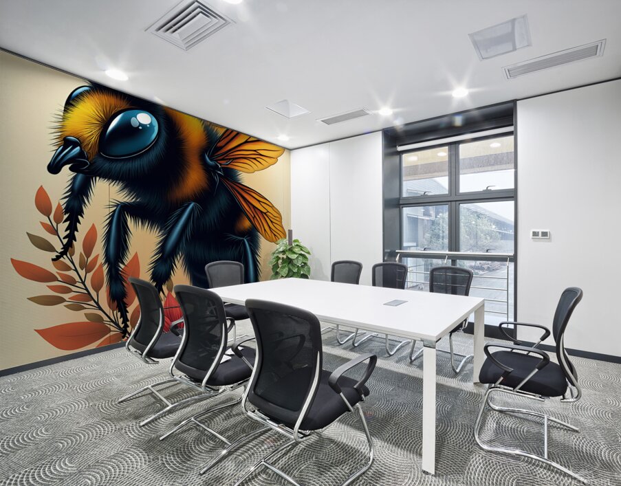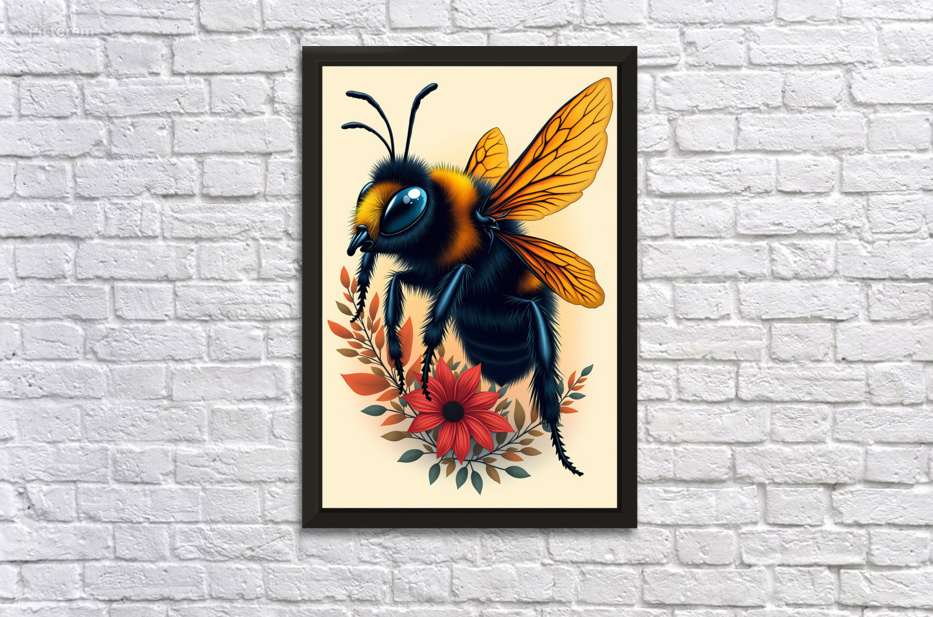 ABOUT THIS ARTWORK: VIBRANT BUMBLEBEE AND FLORAL ART POSTER – NATURE-INSPIRED WALL DECOR
