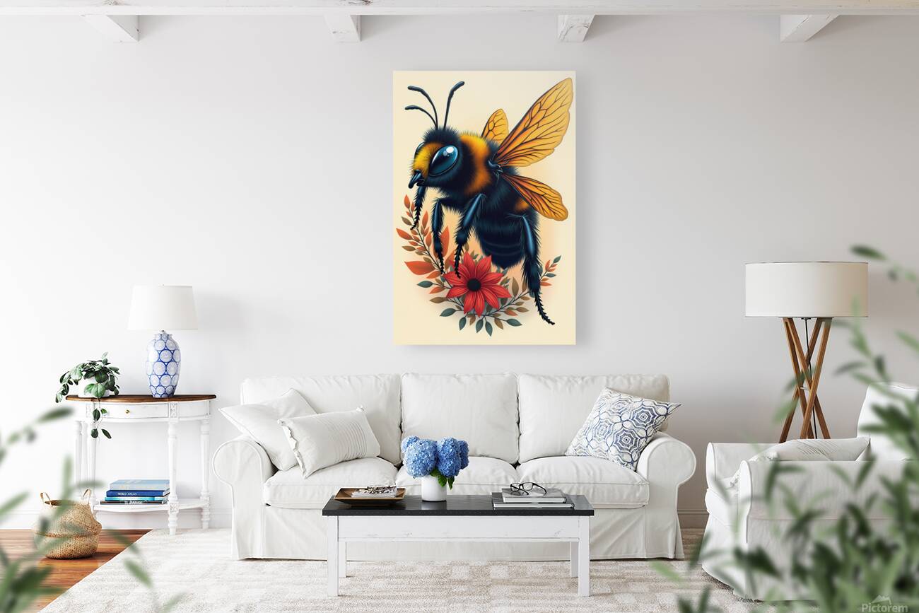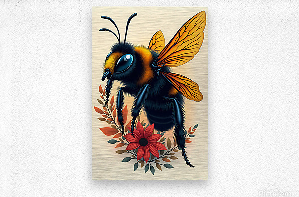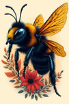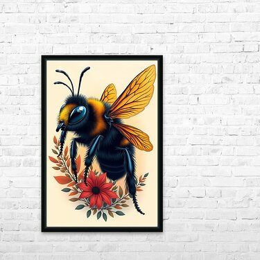 Bring nature's beauty into your space with this stunning digital illustration of a bumblebee resting on vibrant flowers. This highly detailed, colorful artwork is perfect for nature lovers, bee enthusiasts, and those looking to add a touch of elegance to their home or office decor