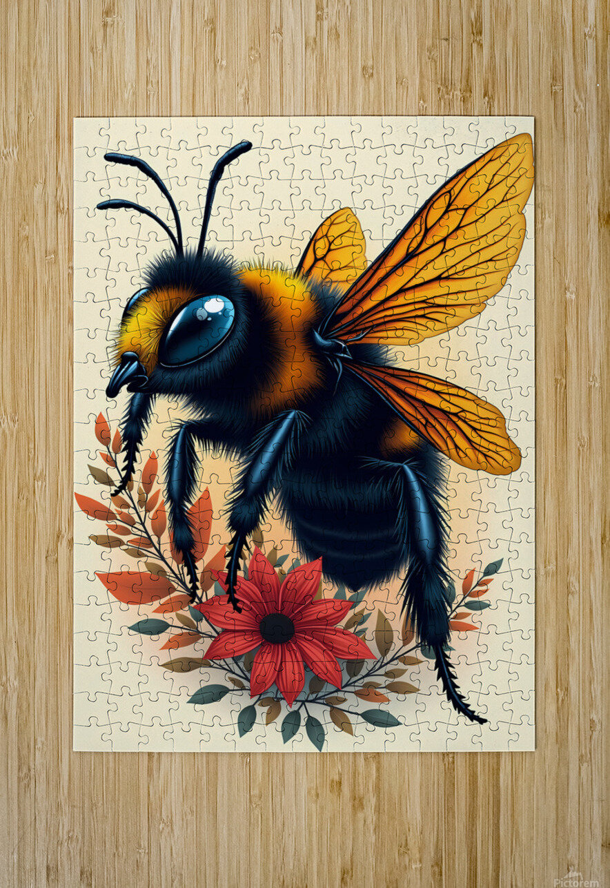Vibrant Bumblebee and Floral Art Poster – Nature-Inspired Wall Decor el halaoui ali Puzzle printing