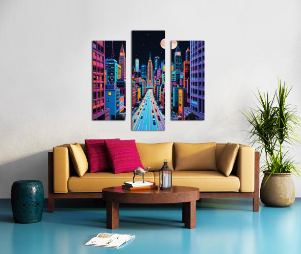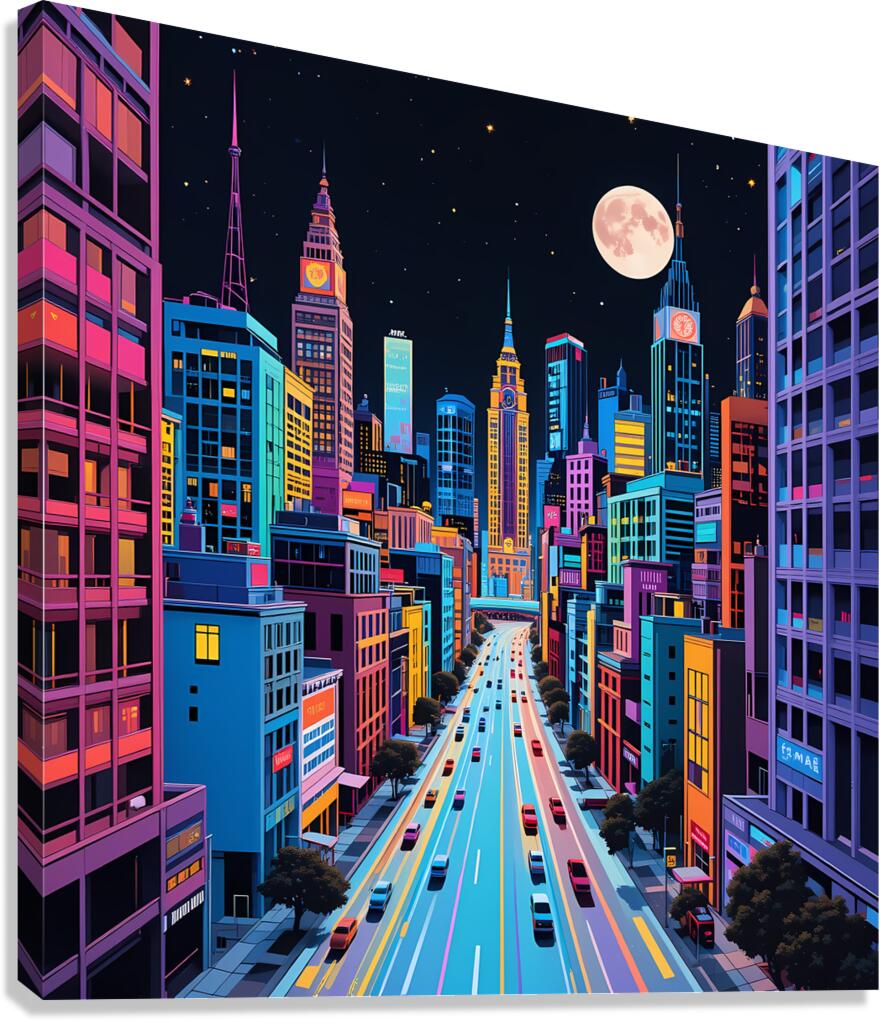 Dynamic Nighttime City View - Neon Urban Art Canvas print