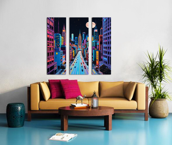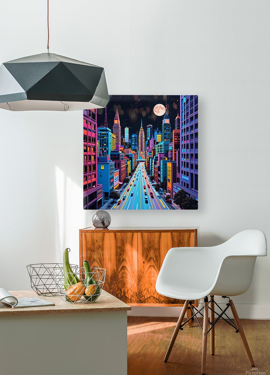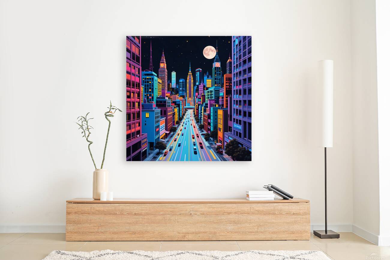 ABOUT THIS ARTWORK: DYNAMIC NIGHTTIME CITY VIEW - NEON URBAN ART