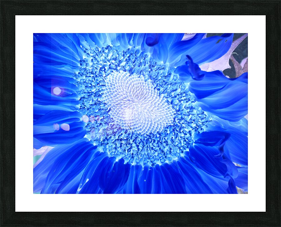 Abstract Deeper Blue Sunflower Picture Frame Printing