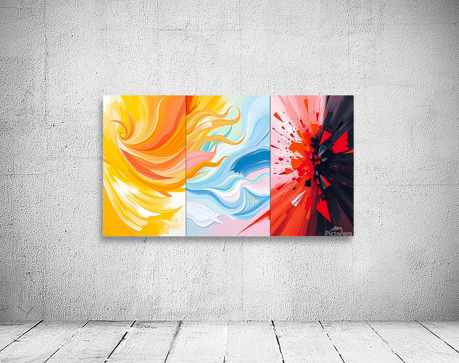 Abstract Energy Triptych - Dynamic Colorful Art Canvas print