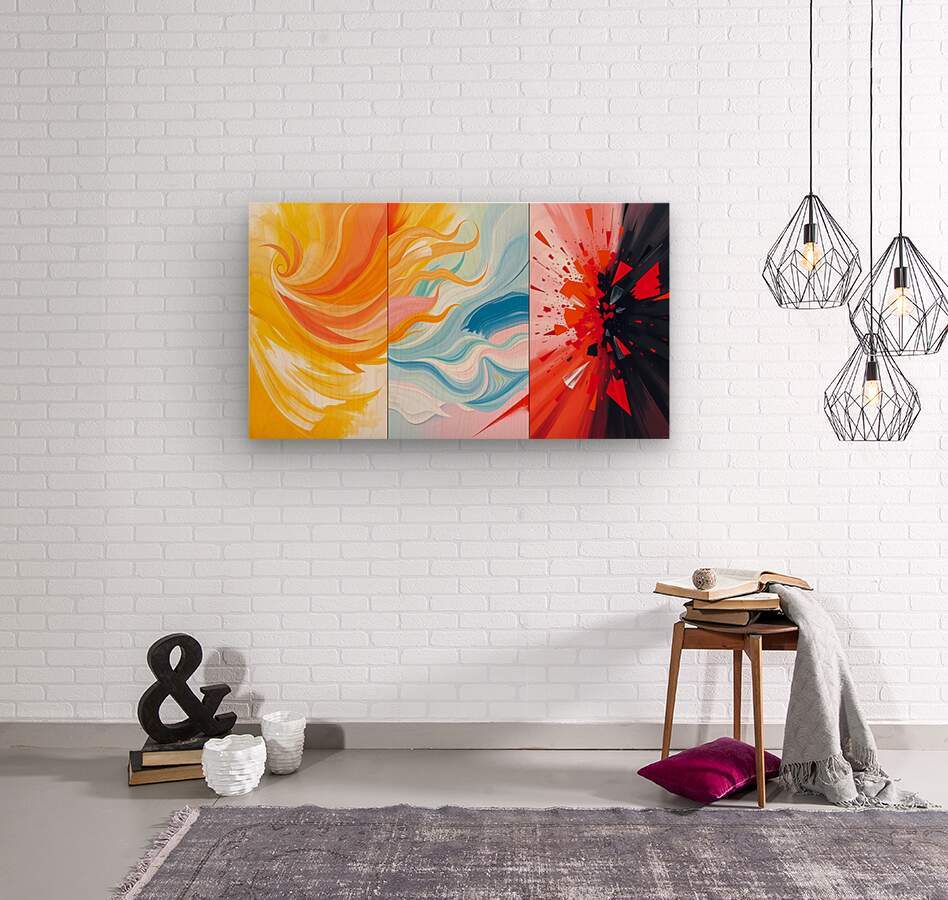 Abstract Energy Triptych - Dynamic Colorful Art  Wood print
