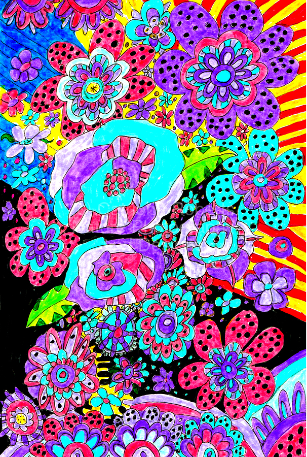 A doodle inspired design created using coloured ink pens and paper laterally digitally colour enhanced to create a cute doodle inspired floral design....[+]