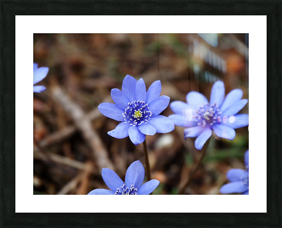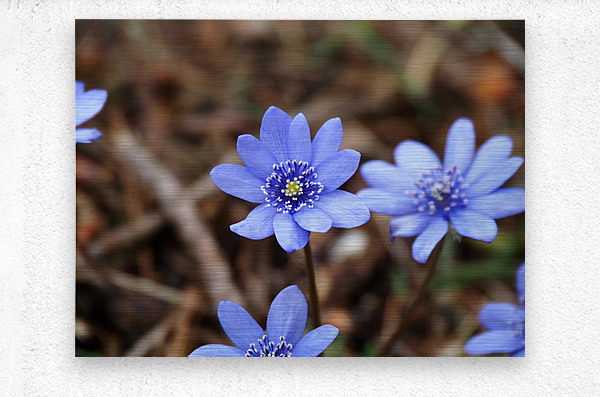 I took this photo during a lovely walk around Edinburgh's botanic gardens. Features delicate blue flower blooms with intricate patterns at their centers, surrounded by a soft-focus background of earthy tones. These flowers exhibit a striking contrast between their vivid petals and the muted, blurred backdrop.
