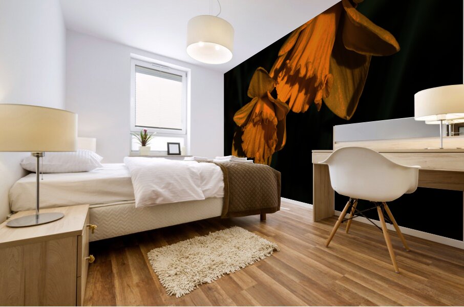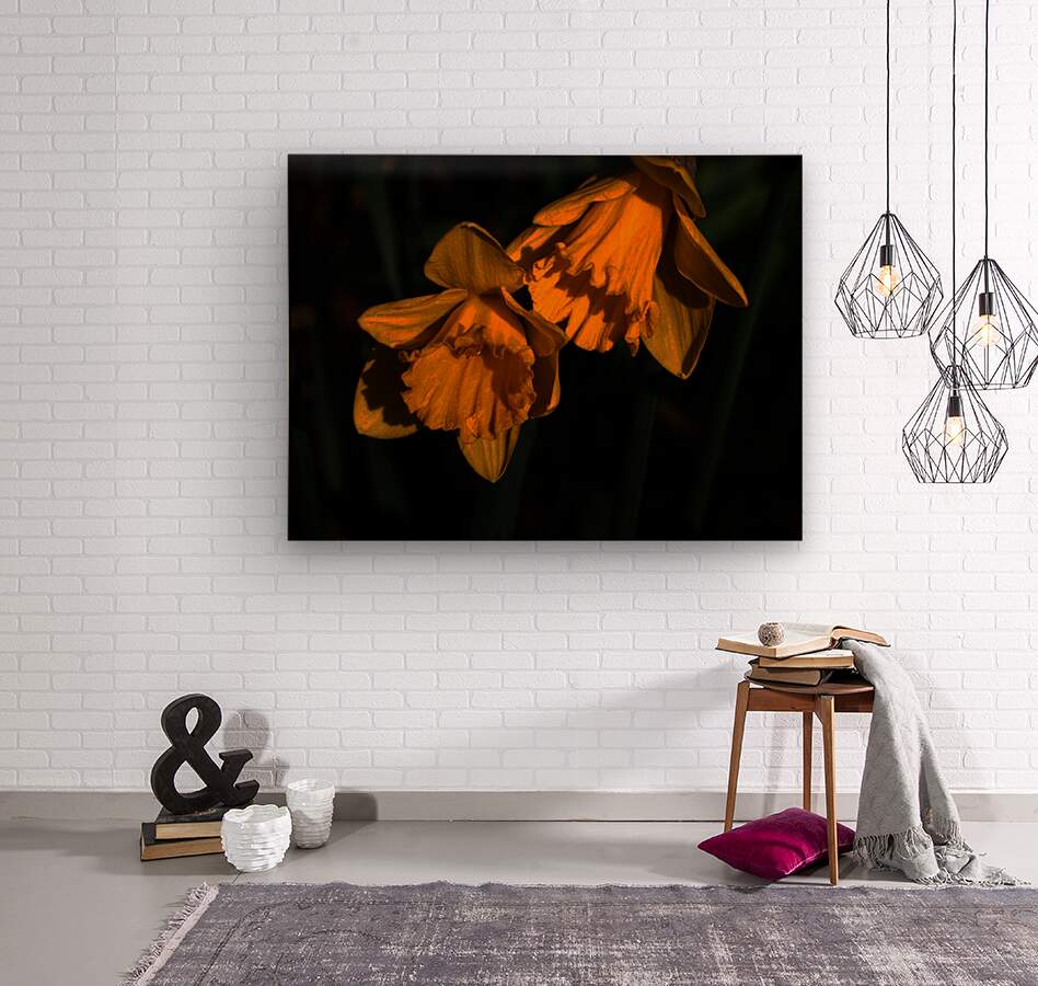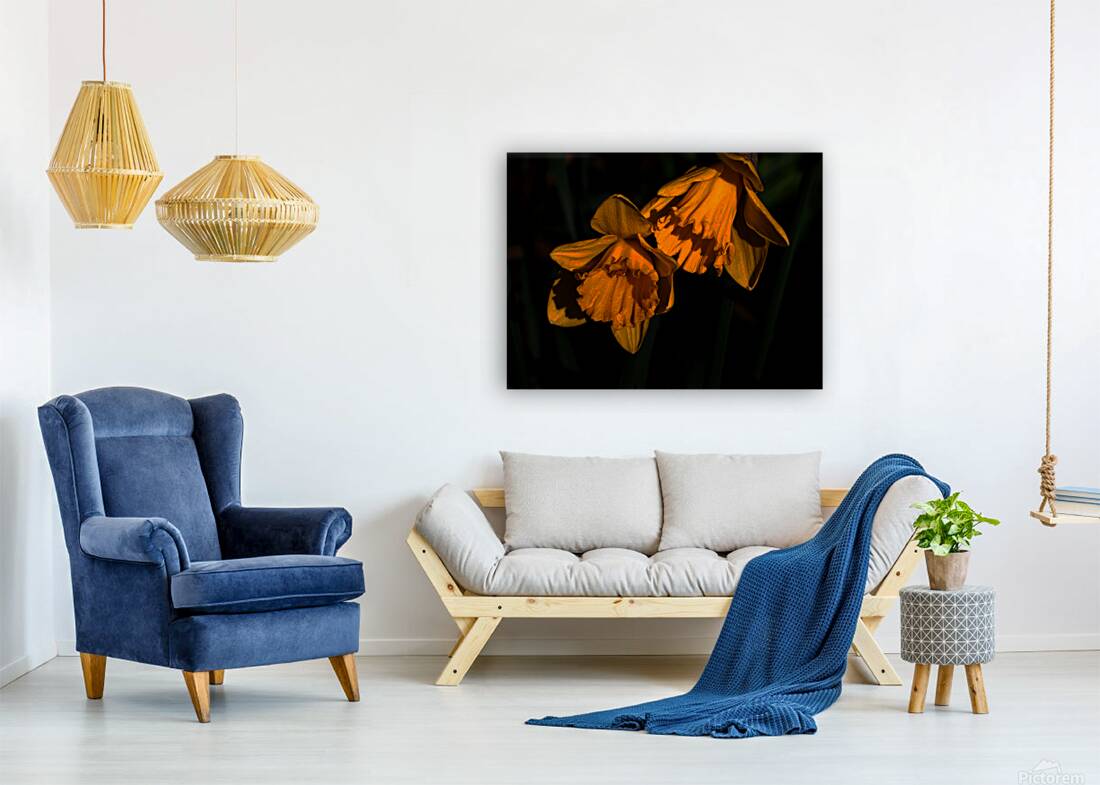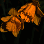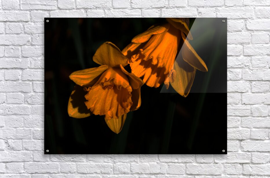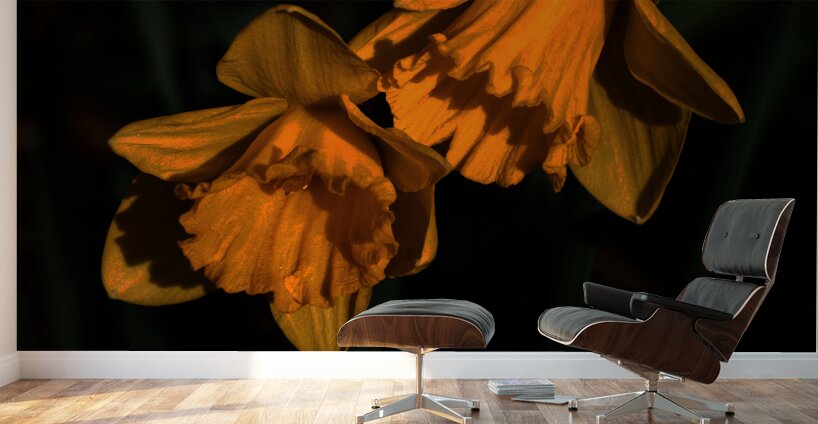 A close up photo featuring two bright yellow daffodils, digitally manipulated to create a stunning piece of contemporary floral art. They stand out a...[+]