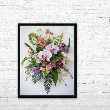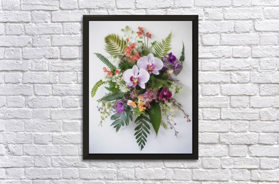Bouquet of Orchids and Ferns Picture Frame Printing