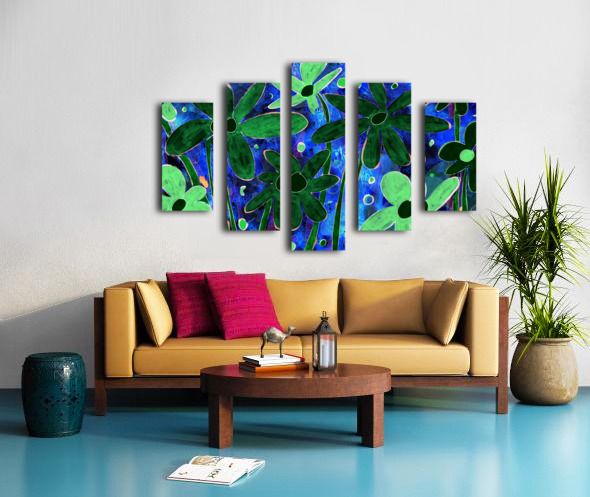 ABOUT THIS ARTWORK: ABSTRACT BLUE AND GREEN FLORALS