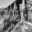 A black and white photo of a hiking path that goes right under an old historic train bridge and riverbank in Cotter, Arkansas, United States. It's...[+]