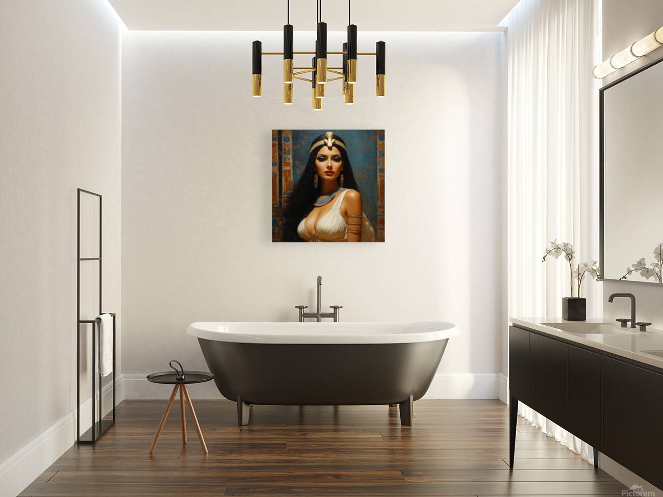 A captivating reimagining of Ancient Egyptian beauty, ‘Crowned in Gold’ presents a modern interpretation of a divine queen — powerful, seductive, and timeless. This hyperrealistic oil-style portrait features rich textures, intricate gold jewelry, and authentic Egyptian design cues, set against a royal backdrop of hieroglyphic motifs. Her gaze holds centuries of strength and mystery. This piece is part of AotearoArt’s Royal Heritage Collection, crafted for luxury lovers and collectors who desire sophistication with mythological edge. A true statement piece for elegant interiors.
