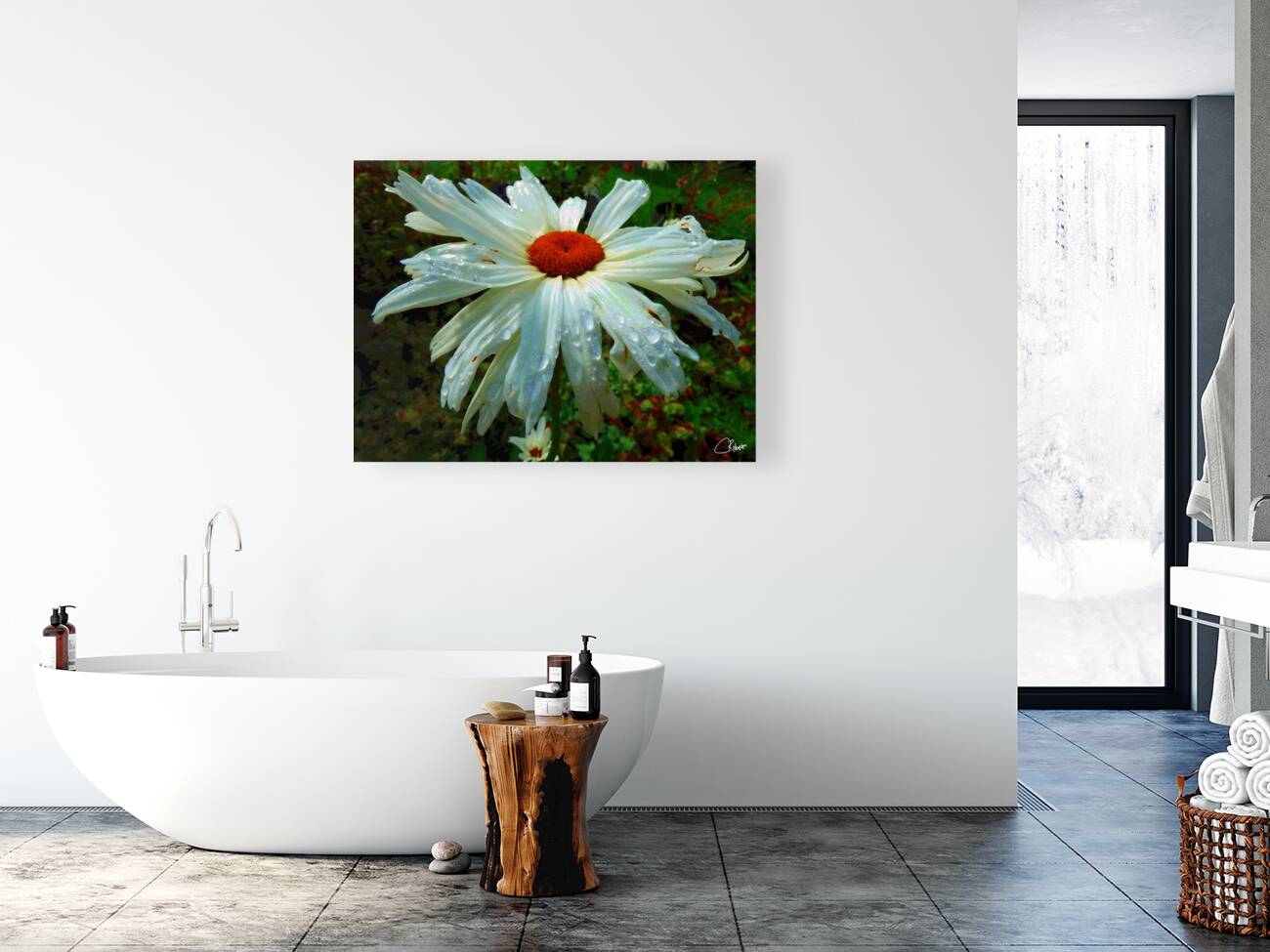 ABOUT THIS ARTWORK: COLOUR POP DAISY WITH AN ABSTRACT BACKGROUND
