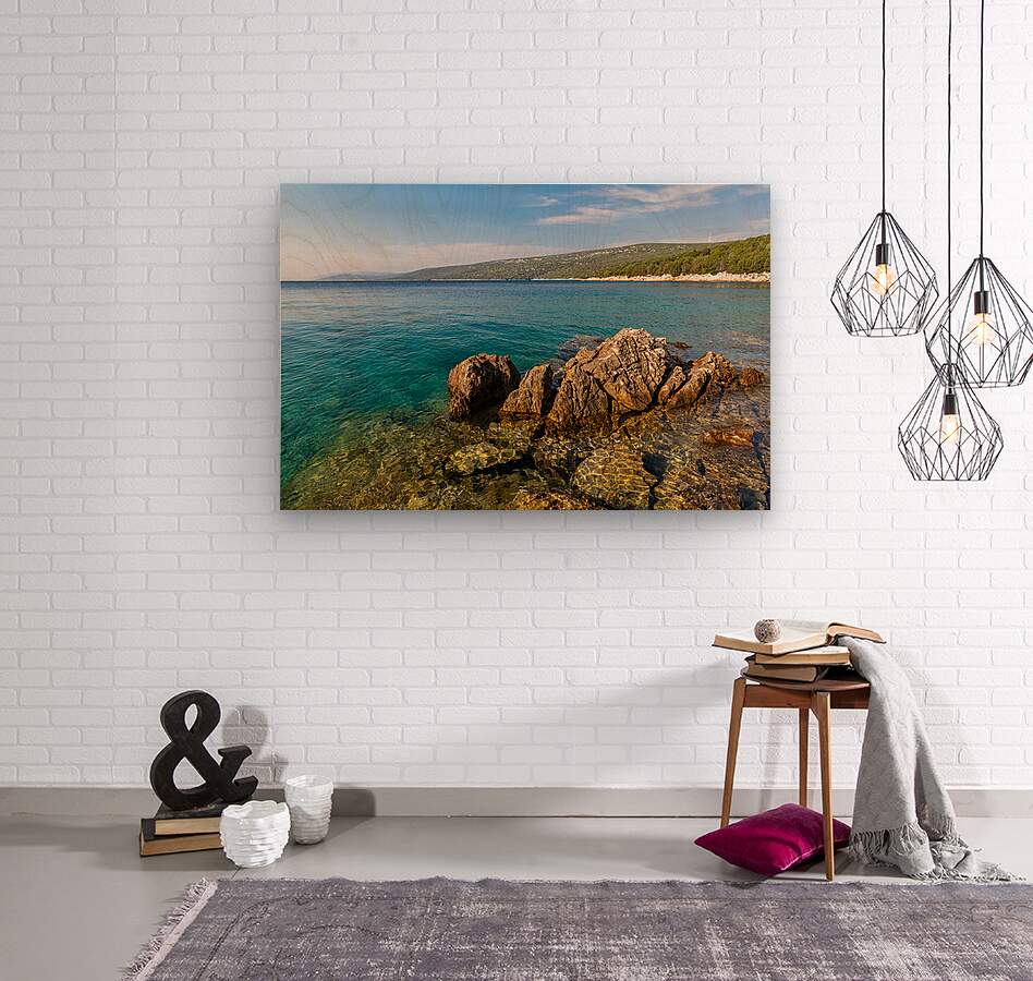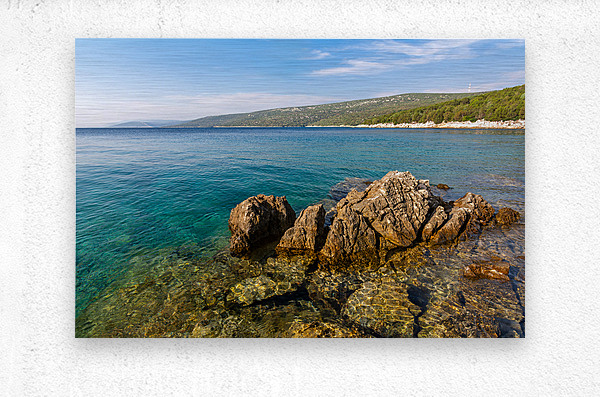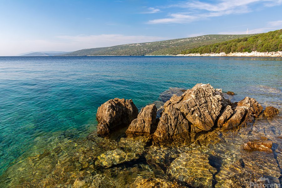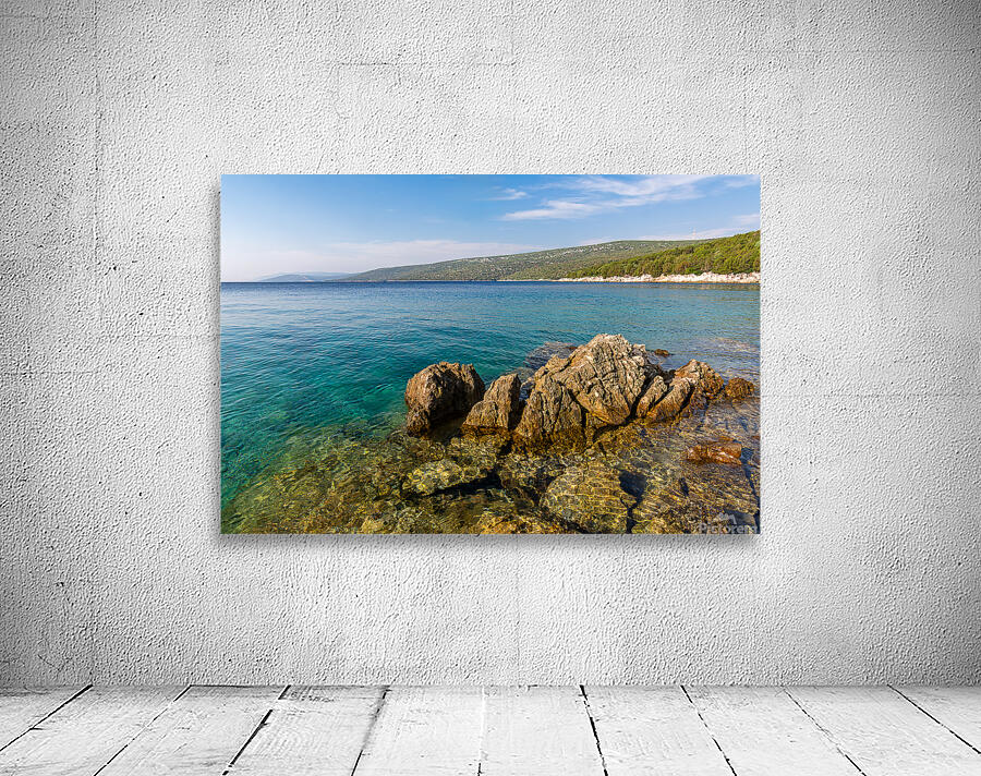 ABOUT THIS ARTWORK: SCENIC ROCK FORMATIONS IN A BEAUTIFUL BAY AT THE ADRIATIC SEA ON THE ISLAND OF LOSINJ IN CROATIA