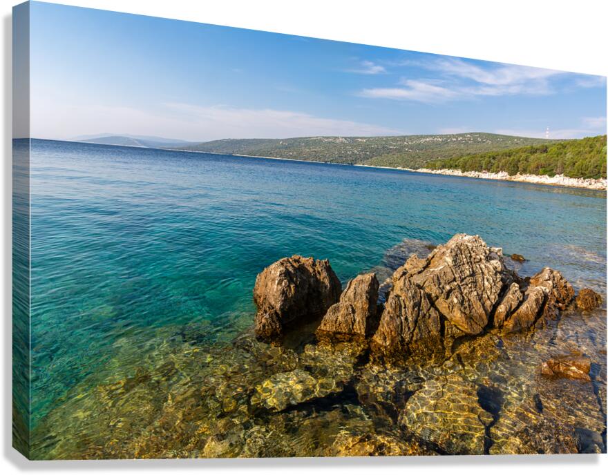 SCENIC ROCK FORMATIONS IN A BEAUTIFUL BAY AT THE ADRIATIC SEA ON THE ISLAND OF LOSINJ IN CROATIA CALADOART  Canvas Print