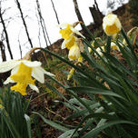 I took this photo during a somewhat rainy nature walk through the Scottish Highlands. Features drooping daffodils with yellow blooms set against a ba...[+]