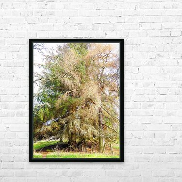 I took this photo during a lovely nature walk through the Scottish Highlands. Features a large tree with sprawling branches dominating the scene, surr...[+]