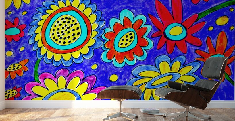 A hand drawn design laterally undergoing some colour digital enhancement. Features brightly colored flowers of various shapes and sizes filling a vibr...[+]