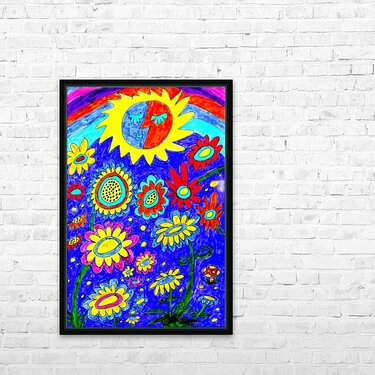 Get this artwork "Abstract Sun and Flowers" in a framed print.