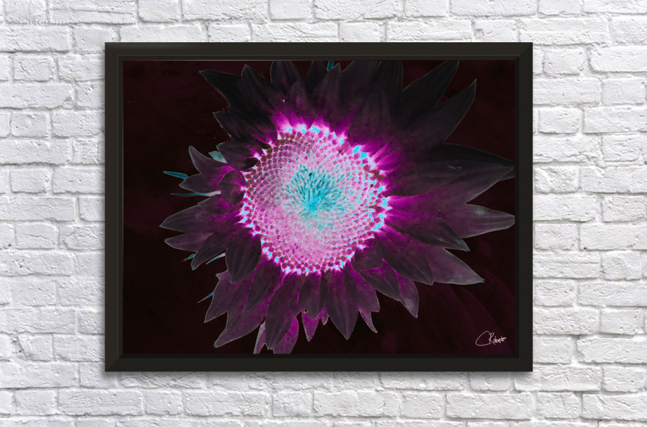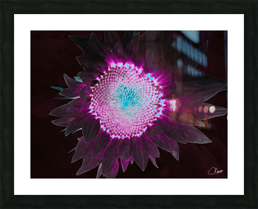 Get this artwork "Abstract Dark Neon Sunflower" in a framed print.