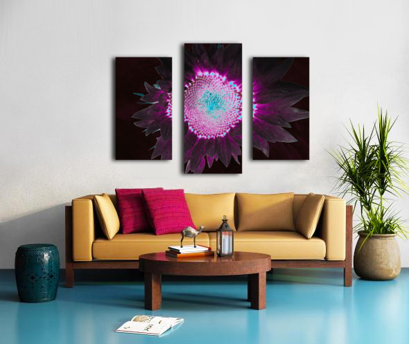 Abstract Dark Neon Sunflower Canvas print