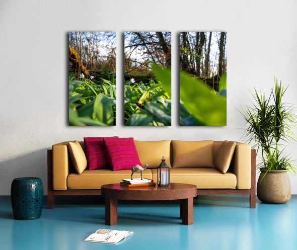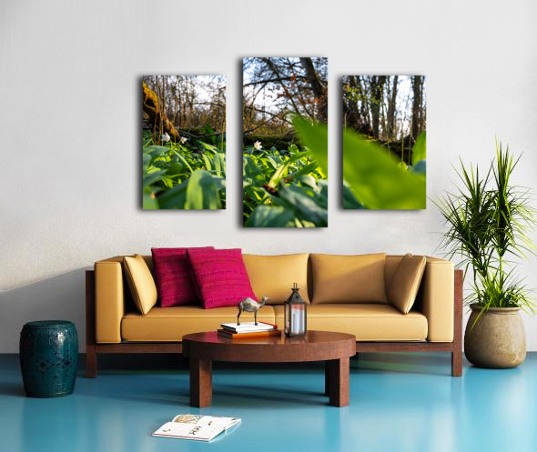 CLOSEUP SHOT OF WILD GARLIC AND THIMBLEWEED IN THE BEAUTIFUL FOREST IN EARLY SPRING AT SUNSET CALADOART  Canvas Print