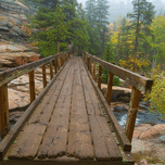 ABOUT THIS ARTWORK: RUSTIC WOOD HIKING BRIDGE CROSSING