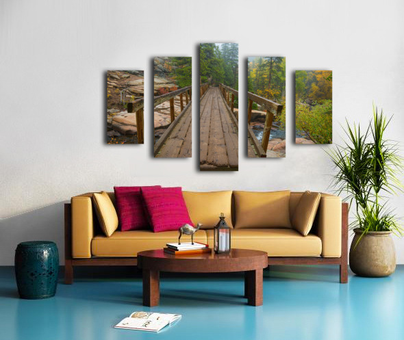 Rustic Wood Hiking Bridge Crossing Canvas print