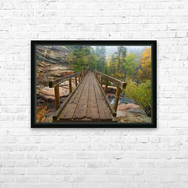 Rustic Wood Hiking Bridge Crossing Picture Frame Printing