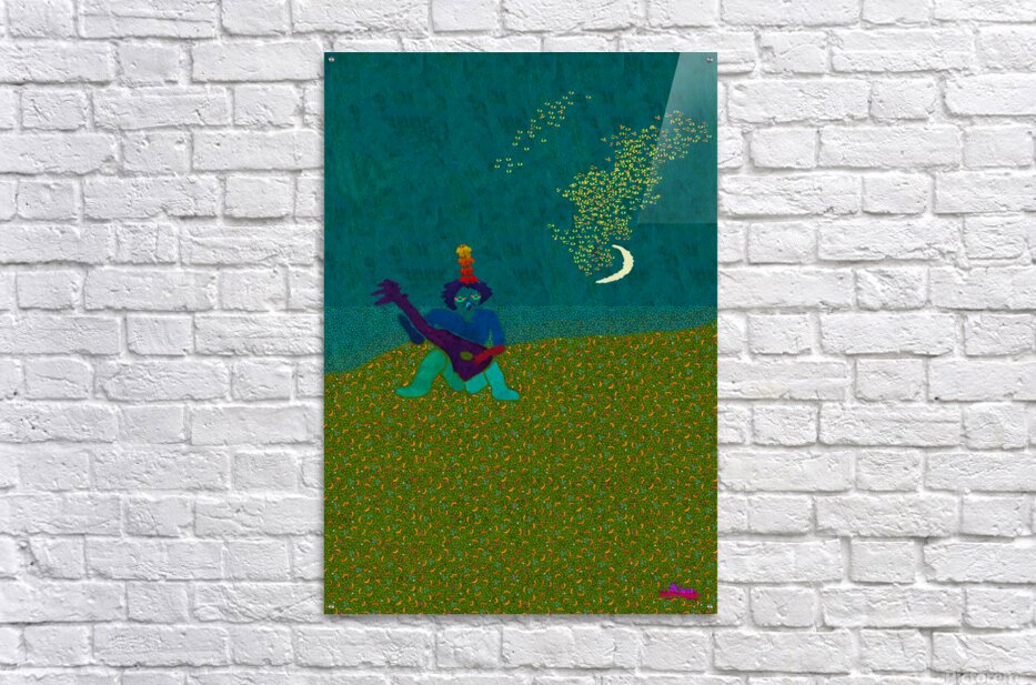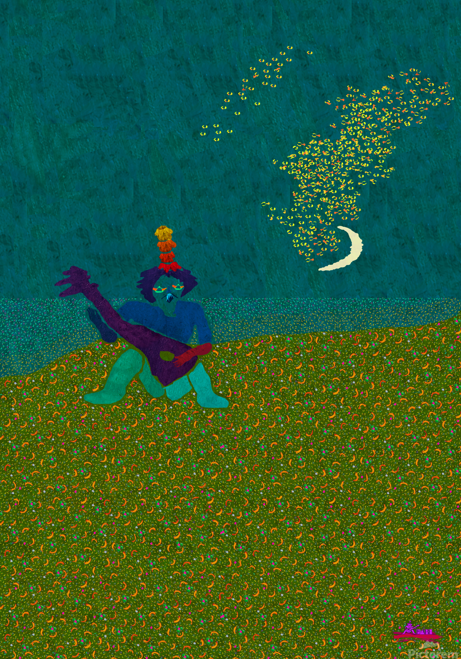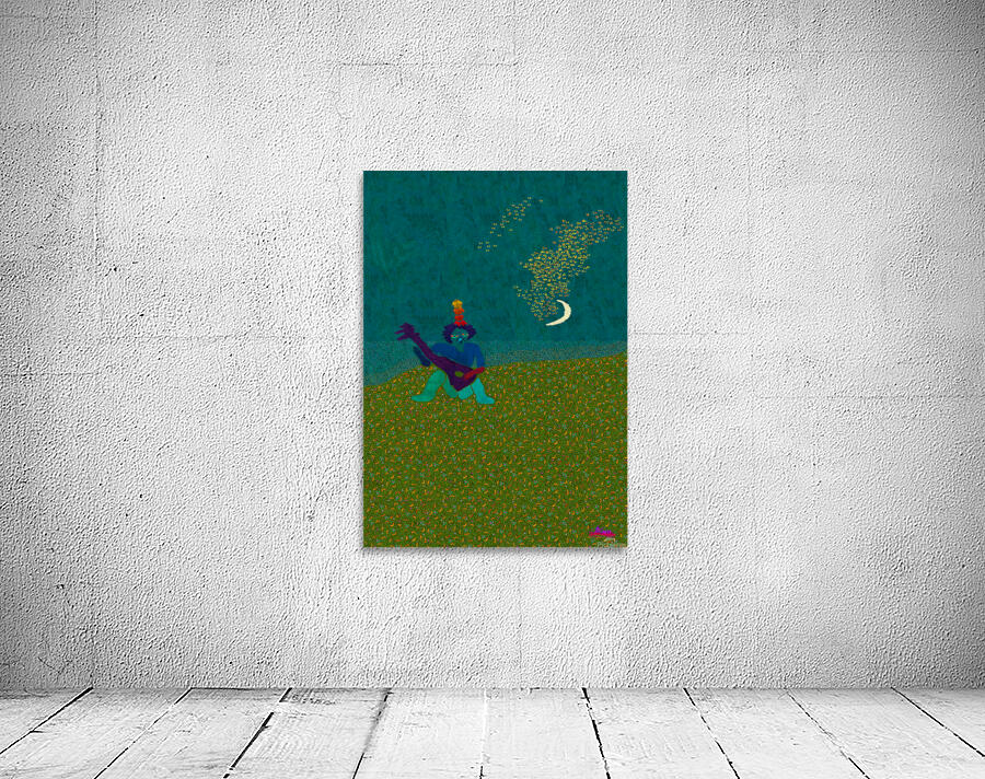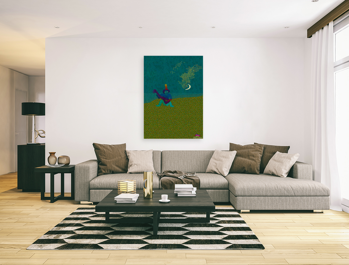 Can you hear the music… Somewhere between dream and reality, Guitarist Under the Moon captures the essence of solitude, creation, and cosmic connection. A lone figure sits beneath an endless teal sky, their guitar a portal to another realm. Above them, a swirl of golden eyes drifts like smoke, drawn toward a distant crescent moon. The music is unseen, yet felt - it vibrates in the air, in the patterns of the earth, in the space where silence meets sound. This piece is a meditation on expression, on playing your truth into the universe and watching as it transforms into something beyond yourself. It is a man cunning it knows nothing but action leading to result - the essence of a DARING soul. For You It is for those who understand that every note carries a ripple, and every ripple has the potential to reshape the night. Ideal for seekers, wanderers, and those who believe in the power of music and mystery. Whether it graces your creative space, lounge, or sacred corner, Guitarist Under the Moon will remind you that even in solitude, you are never alone. Your art, your voice, your presence, and your DARING actions—are changing the world beyond what the eye can see. Technique Hand-drawn and digitally transformed, as always the DARE method. Modern meets vintage in layered patterns and controlled color bursts that reward the patient observer. Materials & Size Format: High-definition printed art on rolled canvas Finish: High-definition color, matte texture Part of DARE’s Guitarist Under the Moon collection, 2025. Collector’s Edition DARE to listen. DARE to create. DARE to transcend.
