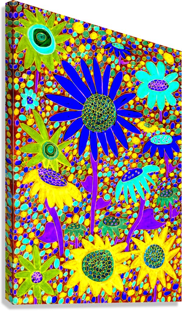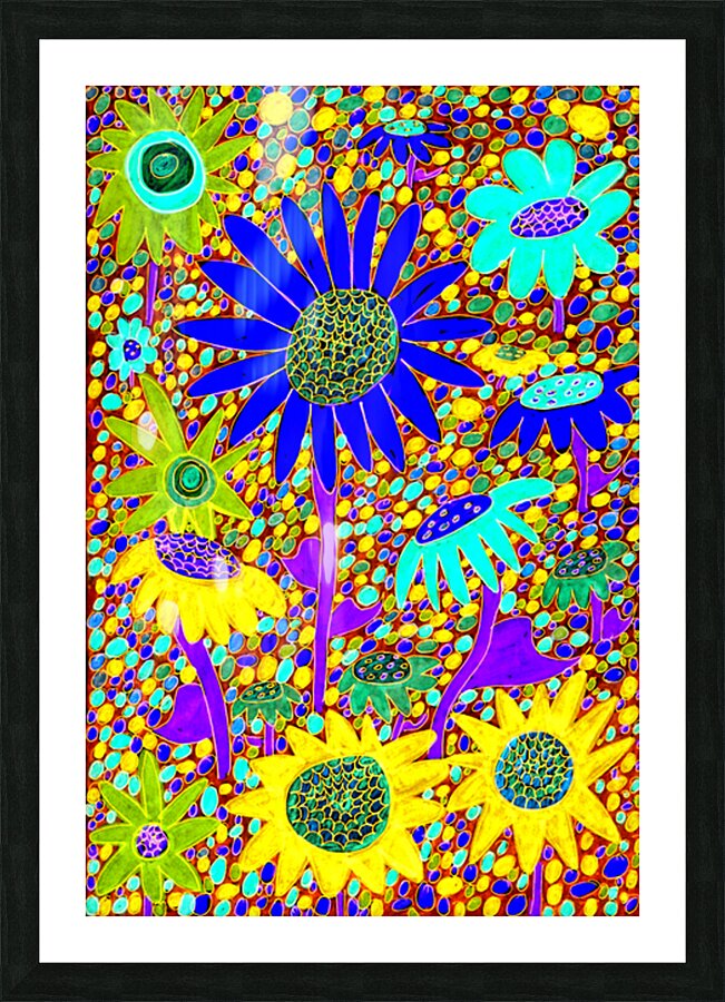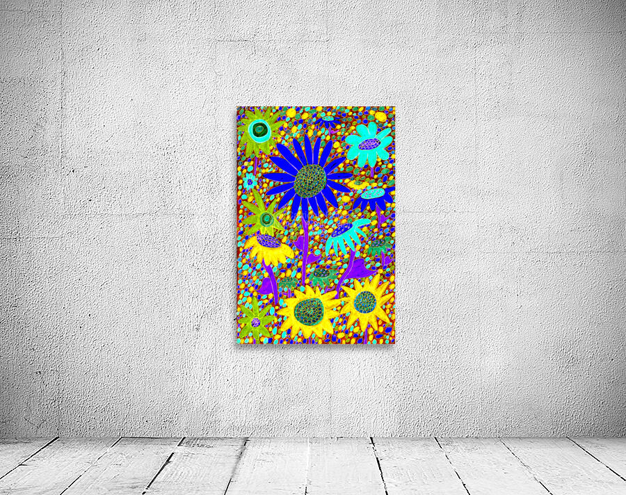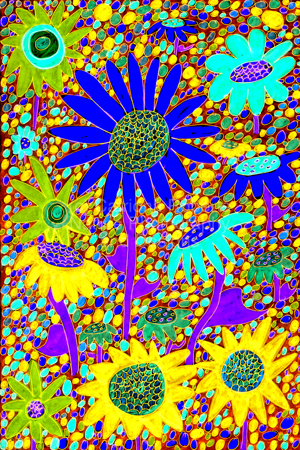 Originally a hand drawn design created using coloured ink pens and paper, laterally digitally manipulated. Features brightly colored flowers with exag...[+]