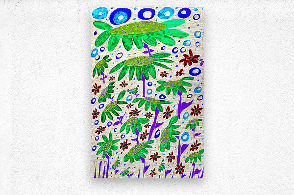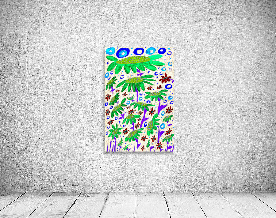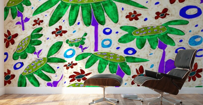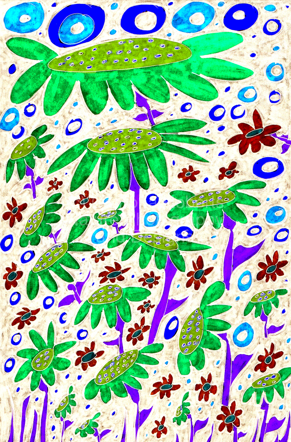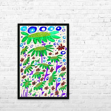 Originally a hand drawn design created using coloured ink pens and paper, laterally digitally manipulated. Features lush green flowers with dotted cen...[+]