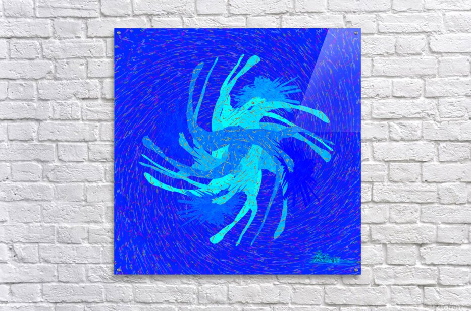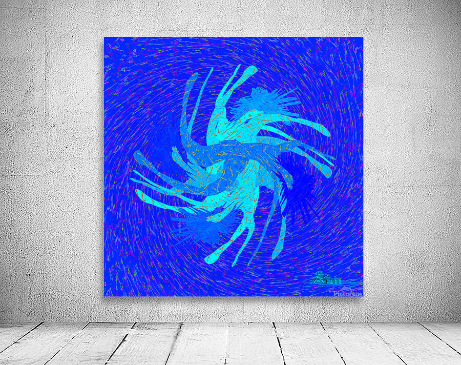 This is what it feels like to be caught in your own becoming. Twirled Afloat captures the swirling momentum of self-discovery, the layered echoes of one movement flowing into the next. It is an image of a body spiraling through blue depths, multiplying, merging, unfolding—like a memory that keeps returning until you're ready to face it. There is beauty in disorientation. In not knowing if you're falling or rising, only that you're moving. That you're alive. This piece dares the viewer to give into the spiral, to trust that where you end up is exactly where you need to be. For You For the ones in motion—the dreamers who dance through doubt, the creators who learn by leaping, the souls who know that meaning often comes after the twist. This is your permission to spin freely. To lean into the vortex. Hang it anywhere you want to be reminded that chaos can be graceful. That motion can be meditation. Technique Hand-drawn and digitally transformed, as always the DARE method. Modern meets vintage in layered patterns and controlled color bursts that reward the patient observer. Design & Materials Print: High-definition artwork on rolled canvas Finish: Matte texture with vivid, layered tones Part of DARE’s Floating collection, 2025. Collector’s Edition: Print 1 of X. DARE to twirl. DARE to drift. DARE to evolve.