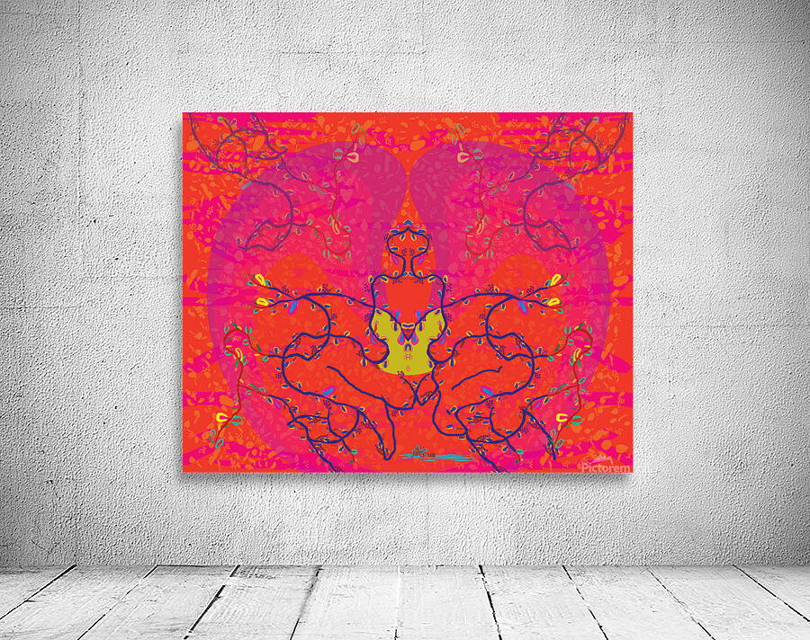 Unruly, divine, and unapologetically alive, Core Vein coils itself around the unseen essence of us. With limbs made of vines and a pulse painted in coral heat, this piece doesn't whisper truth—it pulses with it. At the center, the human figure isn't just resting in nature; it is nature. This is the visual echo of what it means to grow while grounded, to reach while rooted, and to pulse wildly with clarity when all around feels chaotic. Every curve and branch, a declaration: you can be wild and centered, delicate and powerful. For You For those who sense their power blooms from deep within, but aren't afraid to let it tangle outward. Hang this if you need a daily reminder that growth isn’t always graceful, but it’s always worth it. It’s for the ones unafraid to shine loud, to love their inner wilderness, and to DARE live vividly. Technique Hand-drawn and digitally transformed, as always the DARE method. Modern meets vintage in layered patterns and controlled color bursts that reward the patient observer. Design & Materials Print: High-definition printed art on rolled canvas Finish: High-definition color, matte texture Part of DARE’s Lucid Vines collection, 2025. Printed in limited editions. DARE to entangle. DARE to bloom. DARE to be vivid.