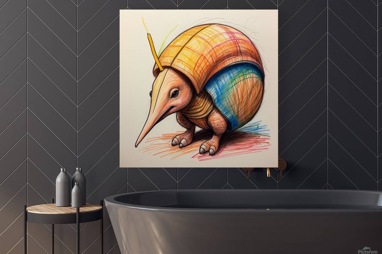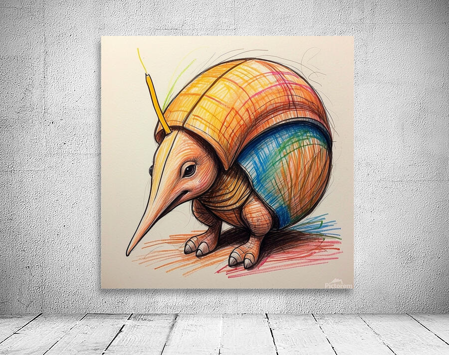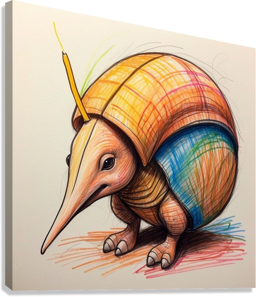 DEFAULT A CARTOON ARMADILLO CURLED UP IN A BALL W ARTISAN PRINT STUDIO  Canvas Print