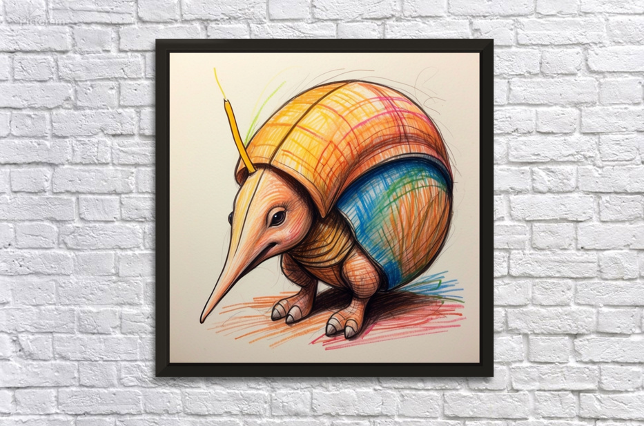 ABOUT THIS ARTWORK: DEFAULT A CARTOON ARMADILLO CURLED UP IN A BALL W