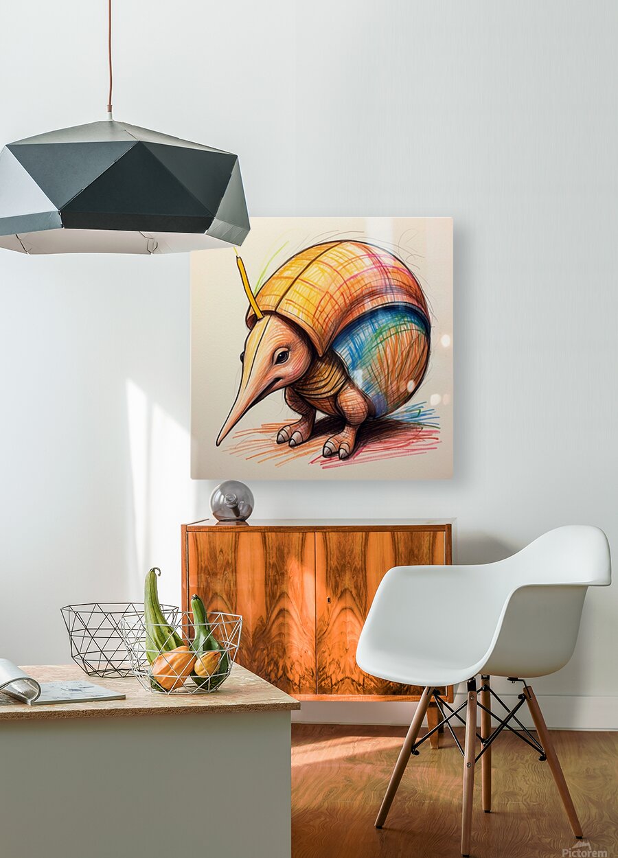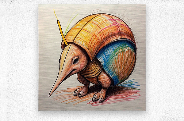 Default A cartoon armadillo curled up in a ball w  HD Metal print with Floating Frame on Back