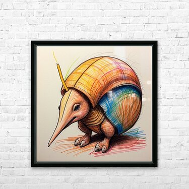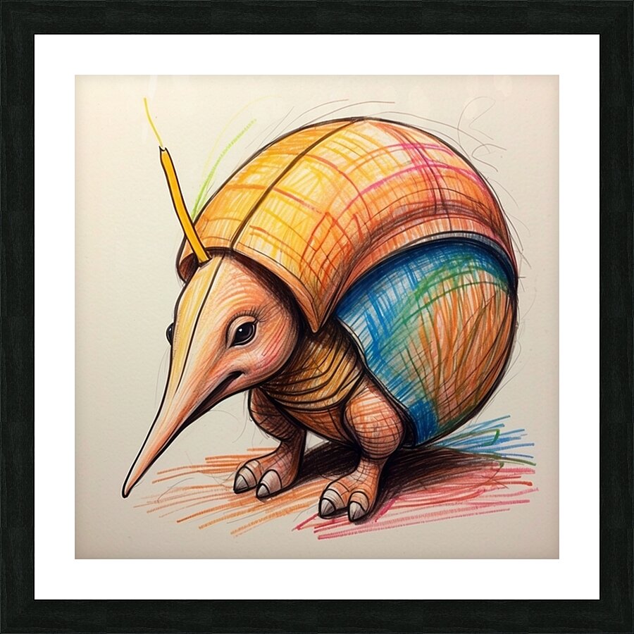 Get this artwork "Default A cartoon armadillo curled up in a ball w" in a framed print.