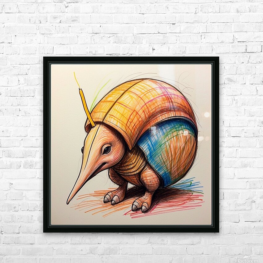 Default A cartoon armadillo curled up in a ball w HD Sublimation Metal print with Decorating Float Frame (BOX)