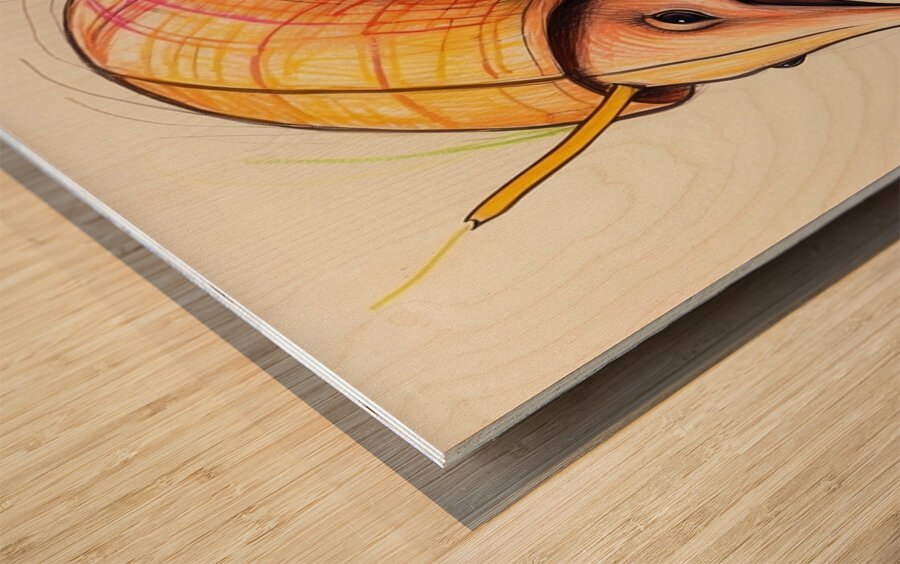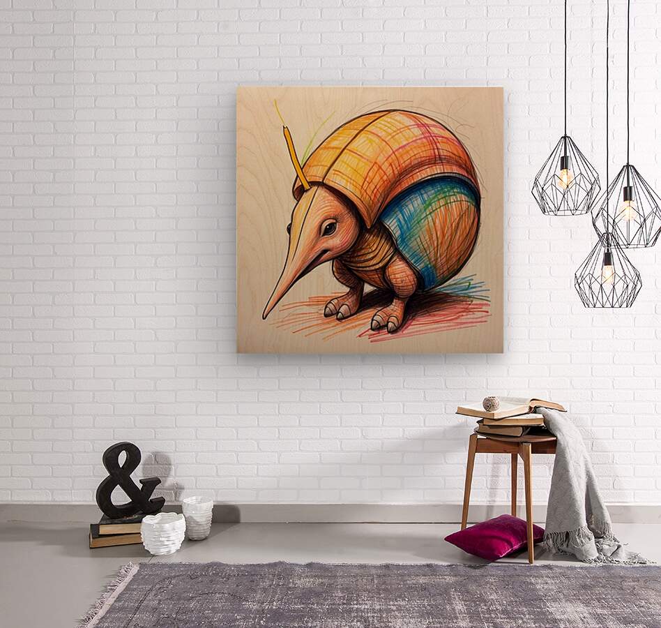 Default A cartoon armadillo curled up in a ball w  Wood print