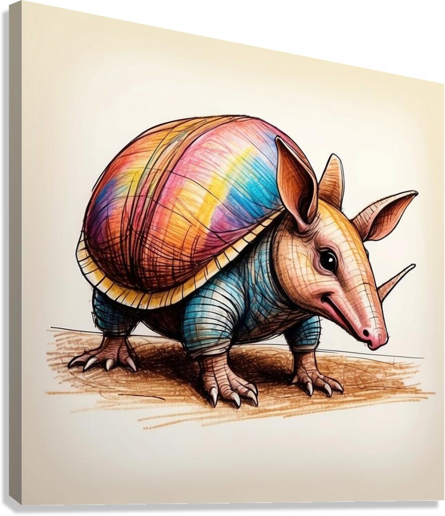 DEFAULT A CARTOON ARMADILLO CURLED UP IN A BALL W ARTISAN PRINT STUDIO  Canvas Print