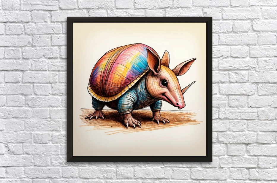 Default A cartoon armadillo curled up in a ball w Wall Decor Frame