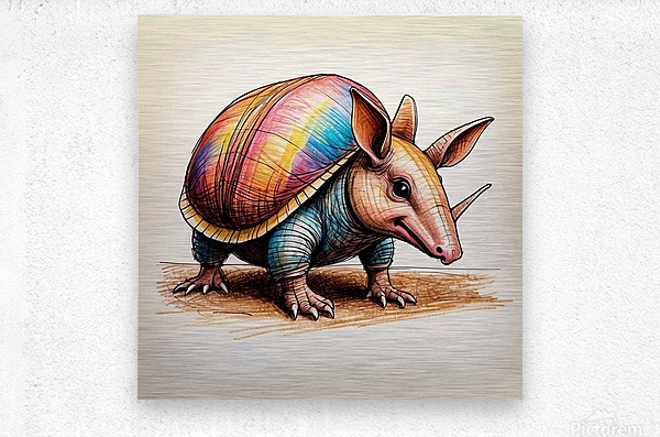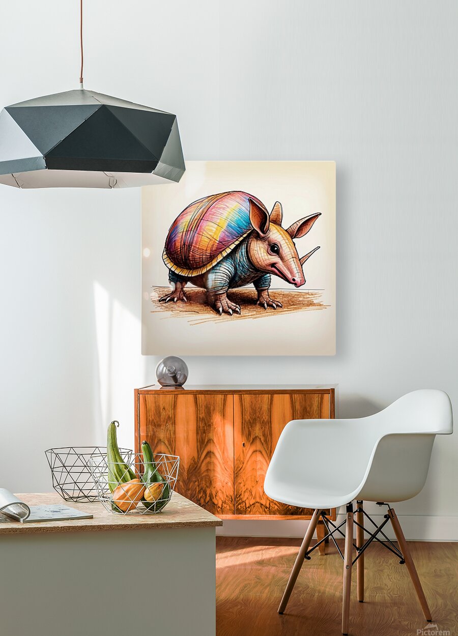 Default A cartoon armadillo curled up in a ball w  HD Metal print with Floating Frame on Back