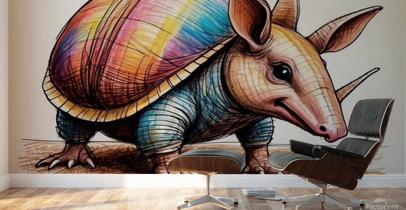 ABOUT THIS ARTWORK: DEFAULT A CARTOON ARMADILLO CURLED UP IN A BALL W