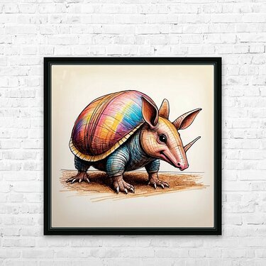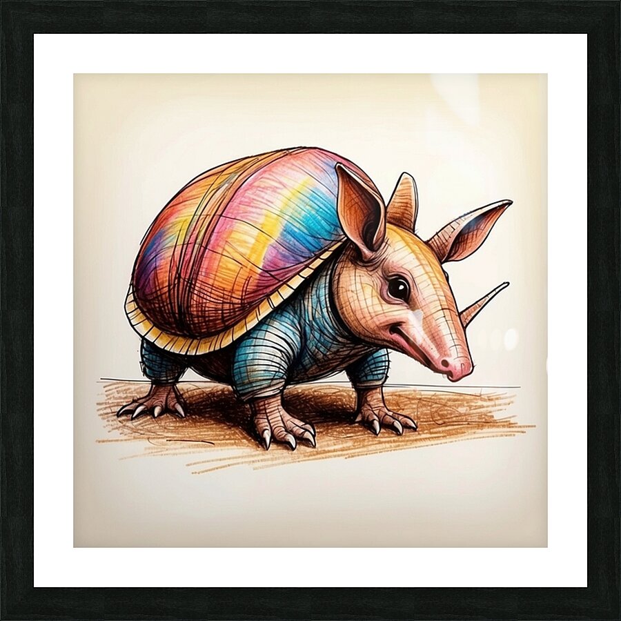 Get this artwork "Default A cartoon armadillo curled up in a ball w" in a framed print.