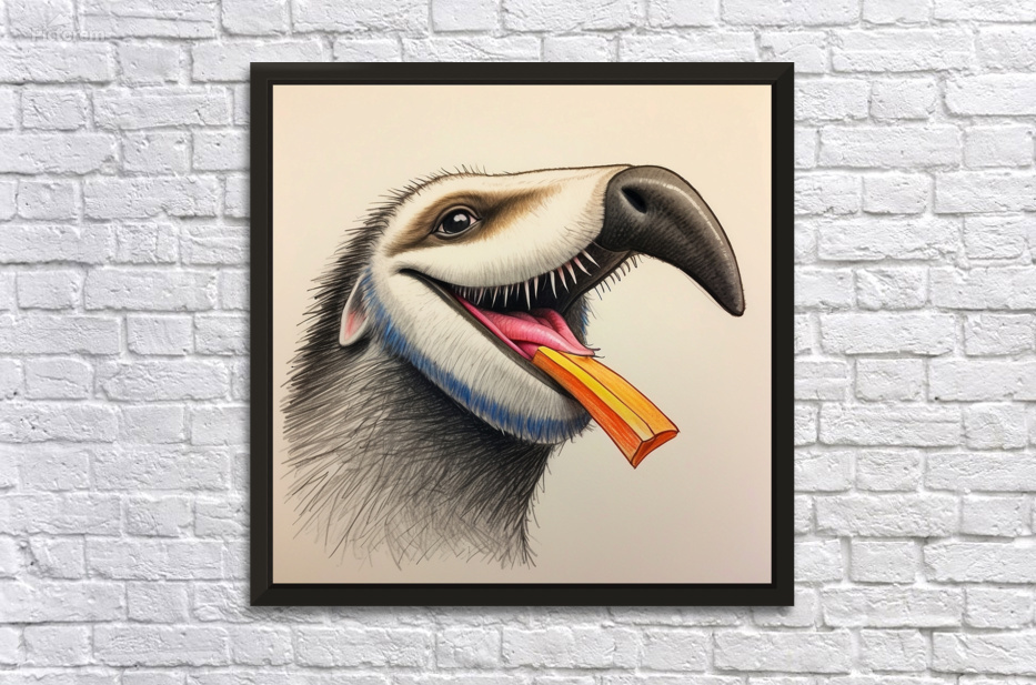 Default A cartoon anteater with its tongue sticki Wall Decor Frame