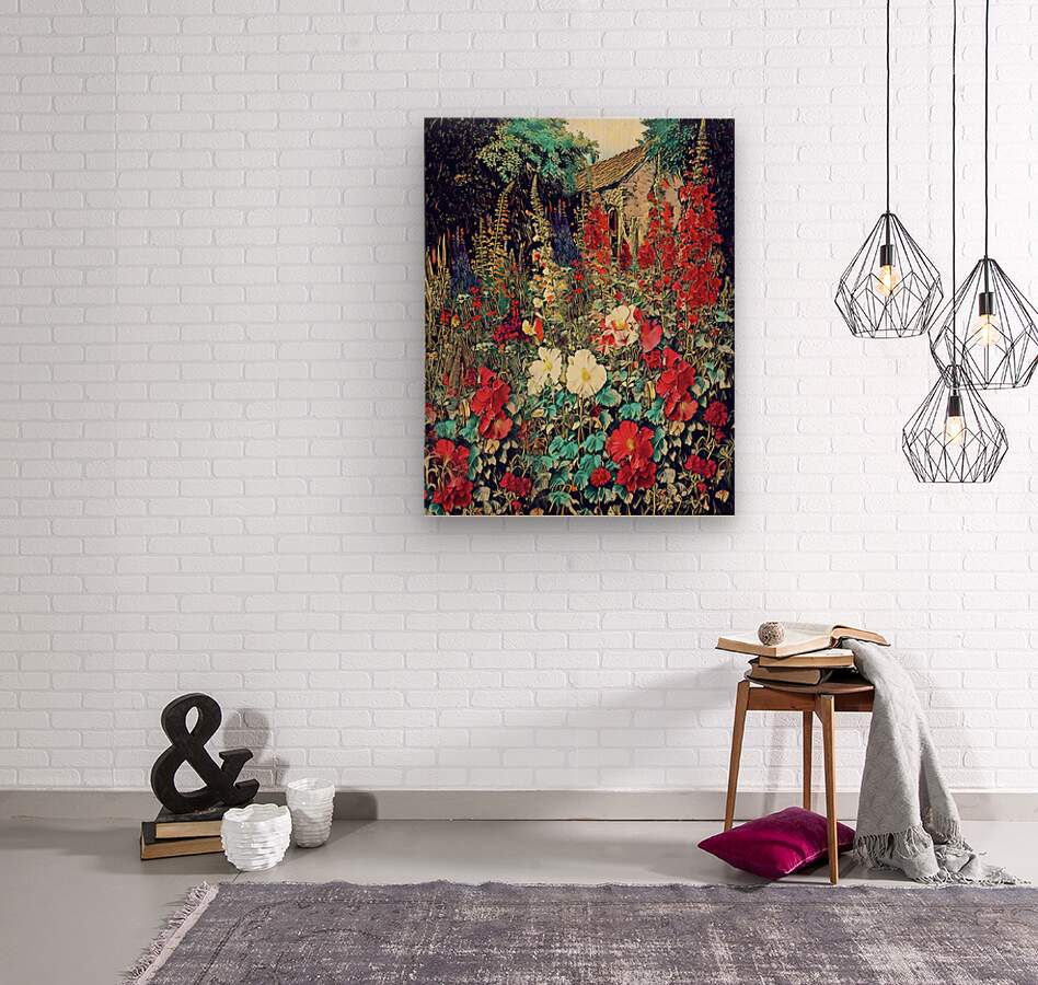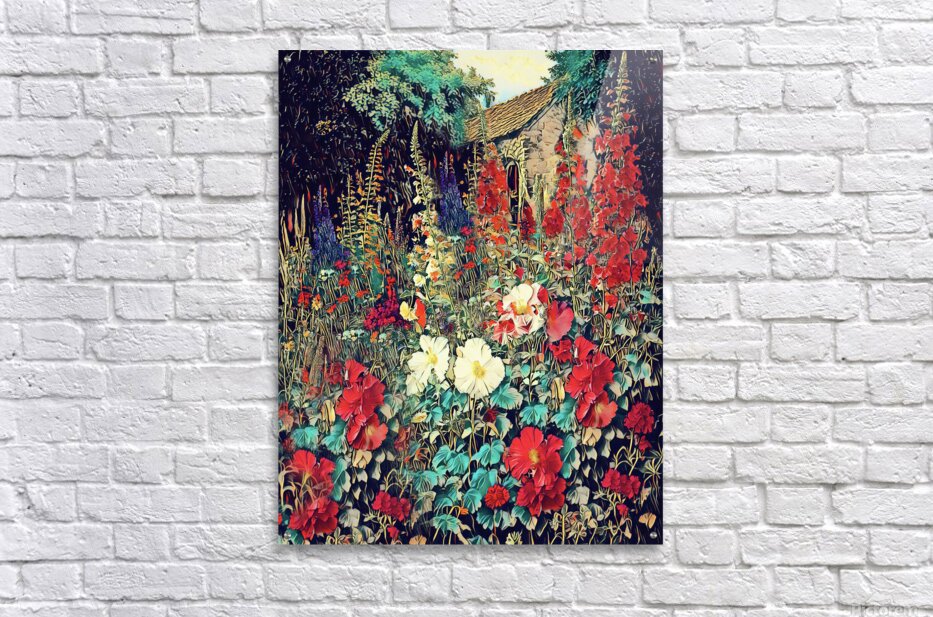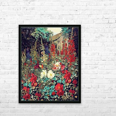 Hollyhocks Guard the Stone House Picture Frame Printing