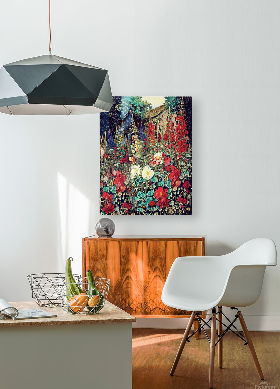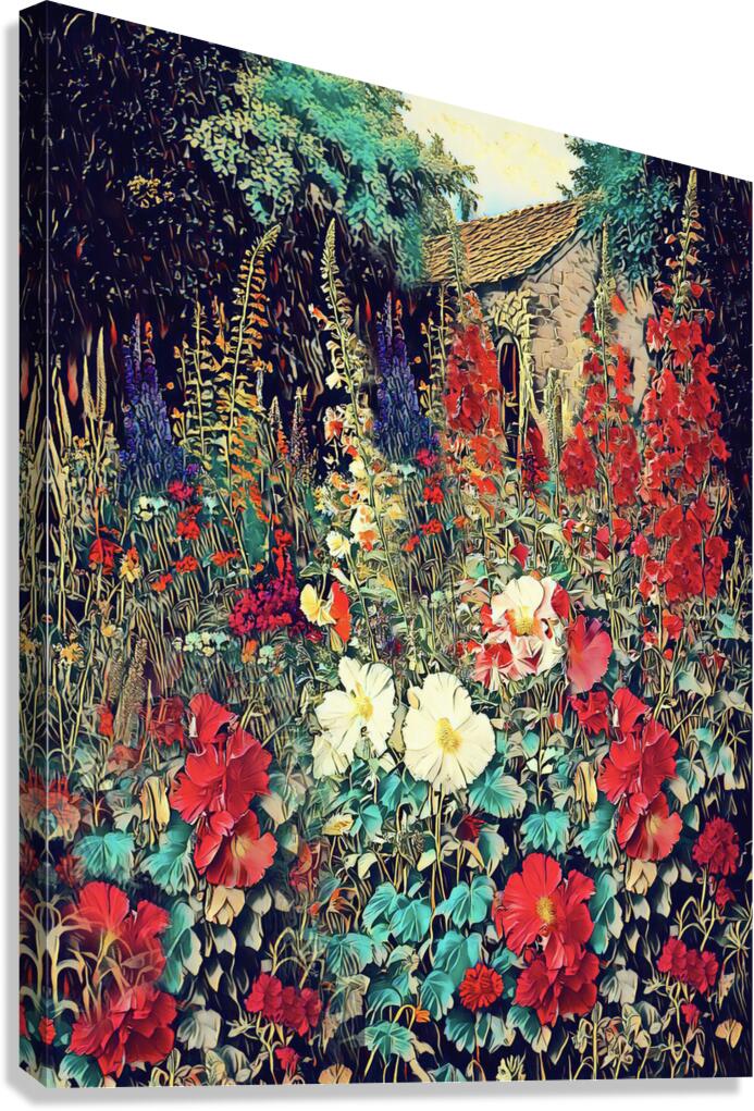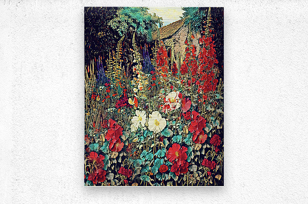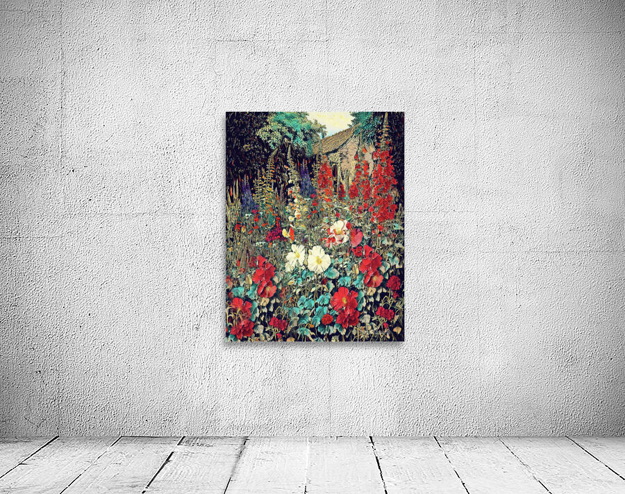 Get this artwork "Hollyhocks Guard the Stone House" in a framed print.