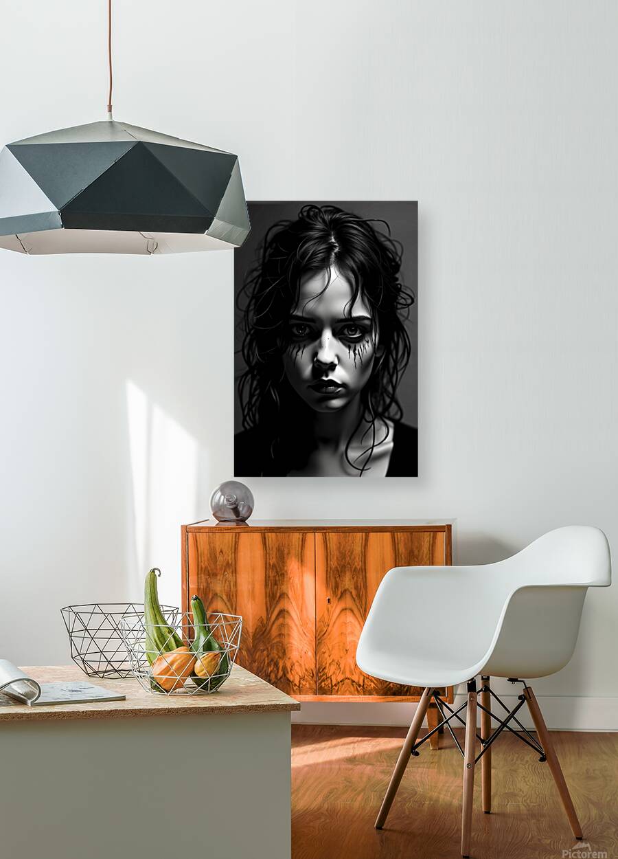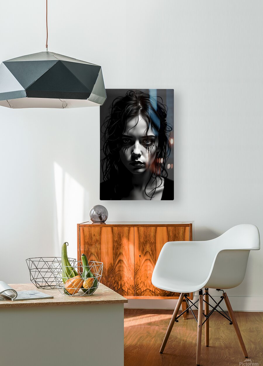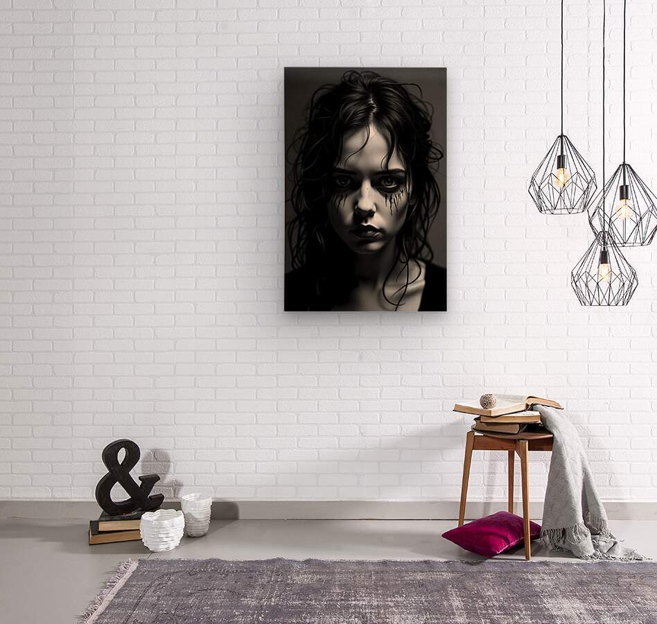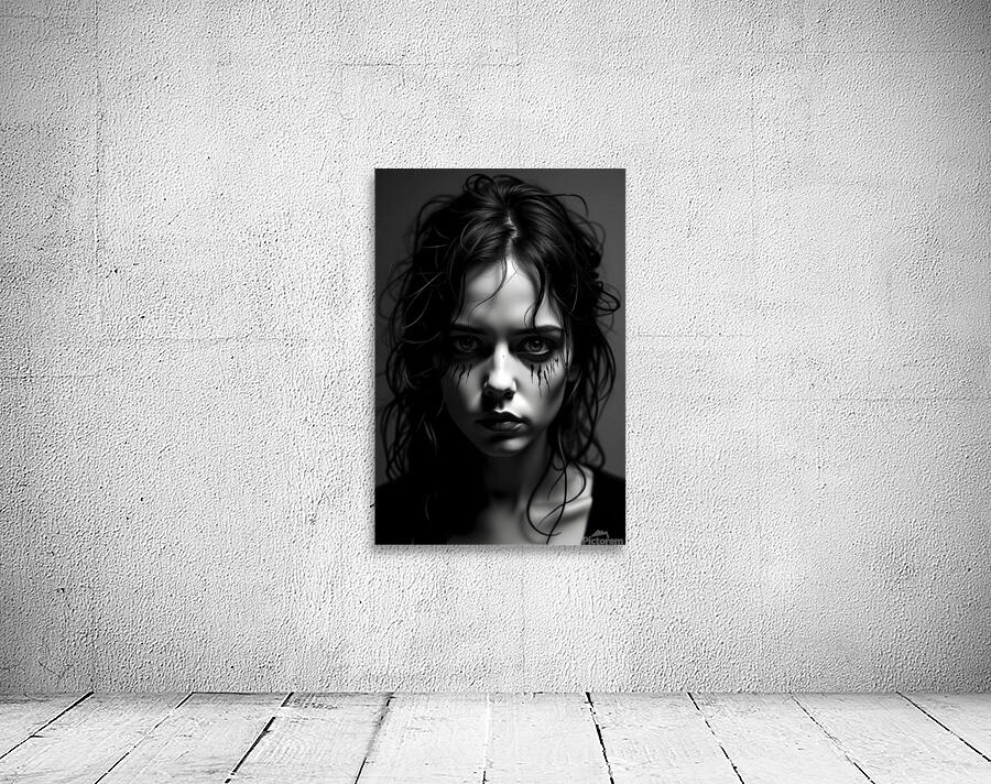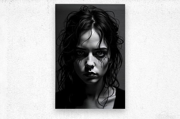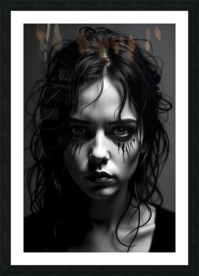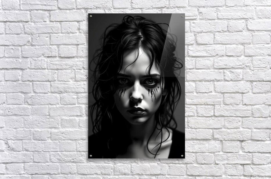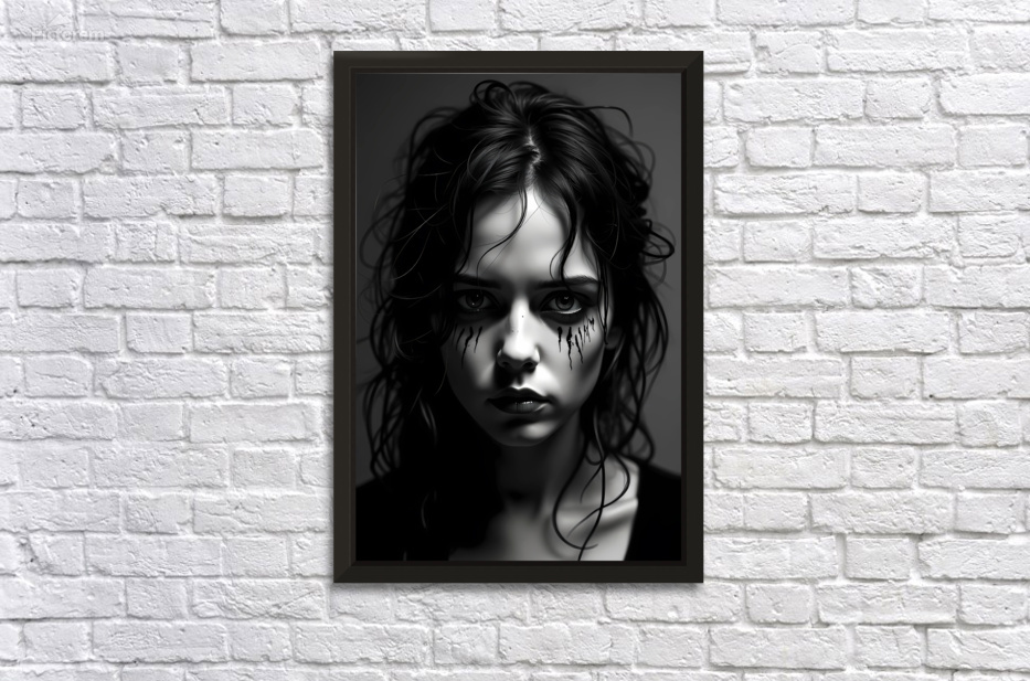 Experience the depth of silent emotion in this mesmerizing gothic portrait of a young woman with tear-streaked eyes. The stark black and white composition enhances the raw beauty of vulnerability and inner turmoil. Her steady gaze and intense expression evoke feelings of strength, mystery, and poetic darkness. Ideal for lovers of alternative art, dark fashion, and emotional realism, this artwork is a striking piece for modern interiors, studios, and gallery walls. Printed on premium canvas, acrylic, or metal surfaces, it's designed to leave a lasting impression.