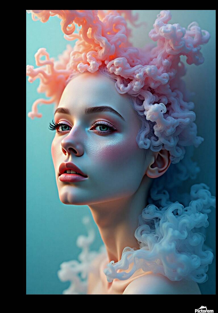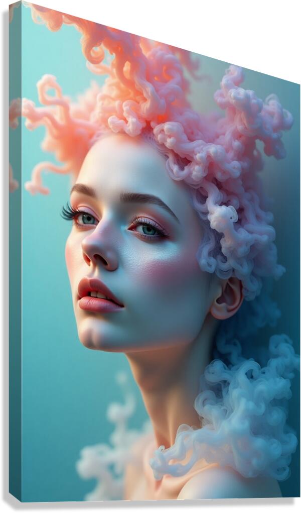 Immerse yourself in serenity and fantasy with Ethereal Bloom, a mesmerizing digital portrait capturing a graceful woman enveloped in soft pastel hues and surreal flowing hair that resembles delicate coral tendrils. The soft light and fluid textures give the piece a celestial, underwater-like ambiance—perfect for creating a calming yet visually captivating space. This dreamlike composition is ideal for lovers of surreal elegance, fantasy portraiture, and modern digital art. Whether hung in a minimalist space or paired with coastal decor, it’s a soothing visual escape that radiates inner peace and quiet beauty.